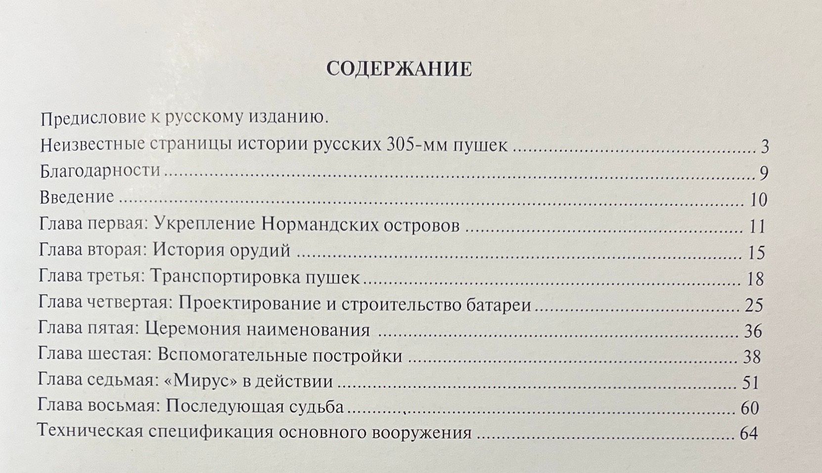 The book tells about the history of creation, combat operations and subsequent fate of one of the batteries of the famous Atlantic rampart, located on the English island of Guernsey occupied by the Germans in 1940-1945 and armed with Russian 305-mm cannons in 52 caliber length from the former line ship of the Black Sea Fleet "Emperor Alexander III" (later "Volya" and then - "General Alekseev"). The cannons, which went to France after the Civil War, were given to the Finns in 1940 and were captured by the Germans during transportation. The construction of the original tower-like artillery installations of the battery and its fortifications created by Krupp engineers are described in detail.
