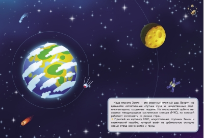 How many secrets the vastness of space holds! Become a space explorer with our book. Reusable stickers will help you learn about constellations and planets, and discover Earth's satellites. Within the book's pages, you can send astronauts on a mission and even launch the International Space Station into orbit. Let's go! Printed edition for children under three.