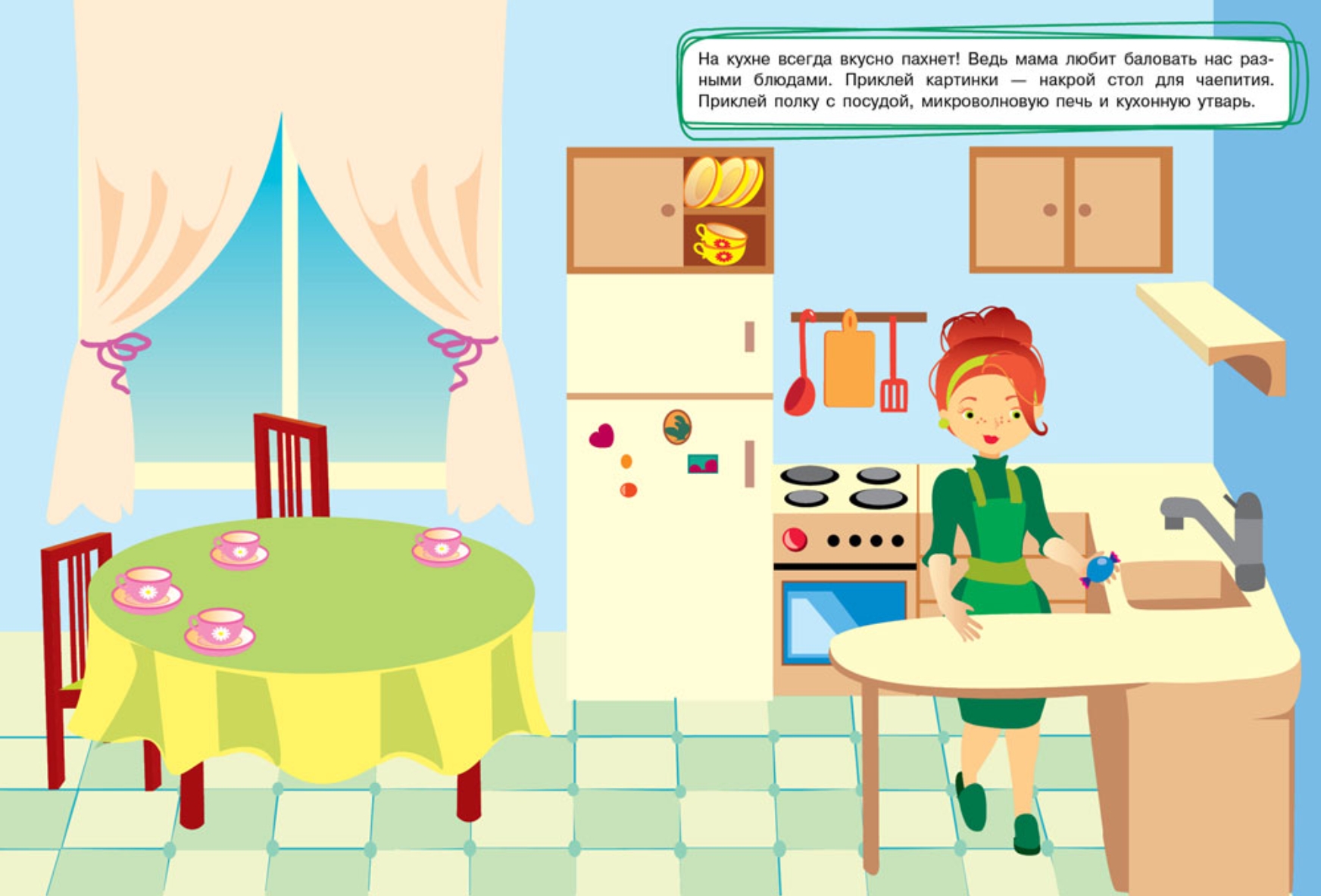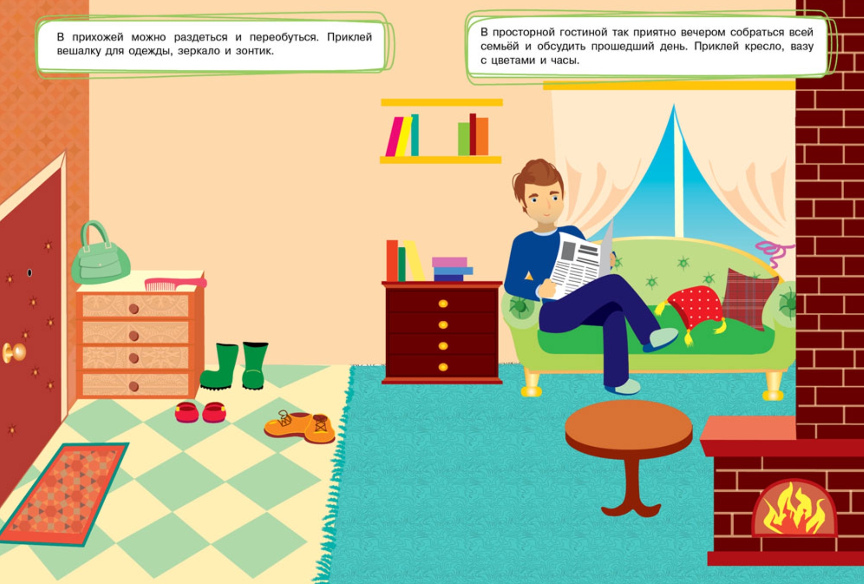 Misha and Masha invite your little one to visit! Fill their home with furniture and toys. You can change the look of the rooms as much as you like – the stickers are reusable! Play and have fun!