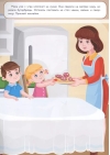 We invite you to visit our kitchen. There's so much to see! Various dishes, appliances, and kitchen utensils—you can stick them all on the shelves, cook dinner, set the table, and stock the fridge. And with reusable stickers, it's doubly fun! For children under 3.