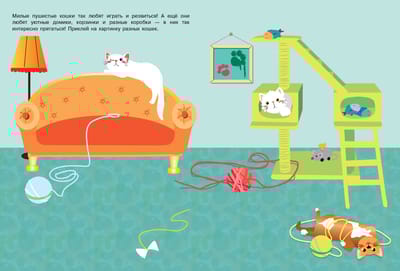Does your little one dream of having a pet? Our book makes it easy! Glue on cute fluffy kittens and dogs, play with parrots and hamsters, and "feed" the fish. Or maybe someone wants a turtle or a chameleon? Find your favorite! For children up to three years old.