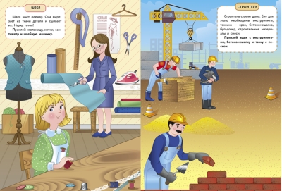 In our book, your little one will learn about the most important professions and discover who builds houses, sews clothes, teaches children, and puts out fires. Bright, reusable stickers will show you what's needed for each profession.