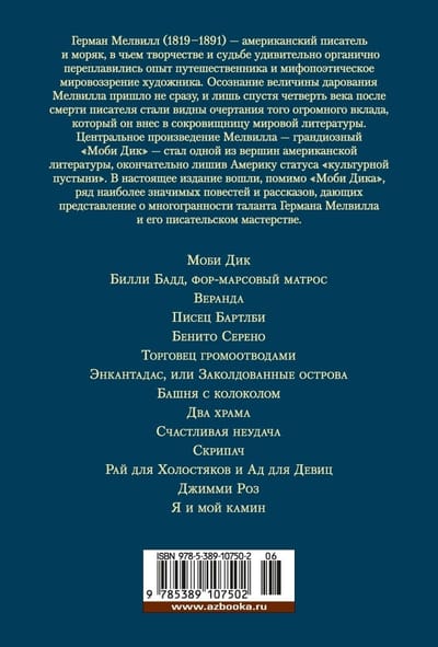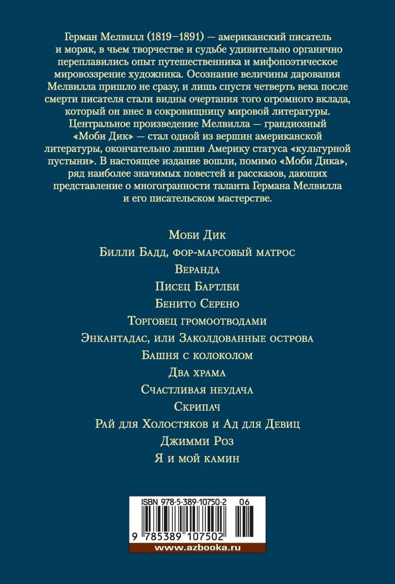 Herman Melville (1819-1891) was an American writer and sailor, in whose work and destiny the experience of a traveler and the mythopoetic worldview of an artist melted together in a surprisingly organic way. Realization of the magnitude of Melville's talent did not come immediately, and only a quarter of a century after the death of the writer became visible outlines of the enormous contribution that he made to the treasury of world literature. Melville's central work - the grandiose "Moby Dick" - became one of the pinnacles of American literature, finally depriving America of the status of "cultural desert". This edition includes, in addition to Moby Dick, a number of the most important novels and short stories, giving an idea of the versatility of Herman Melville's talent and his writing skills.
