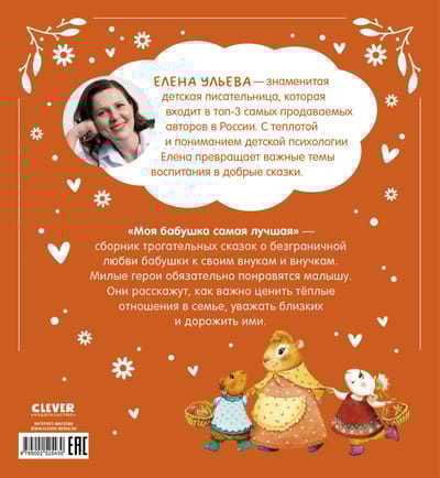 Fairy tales as cozy as a grandmother's hug, stories full of the love and wisdom of grandmothers, a book for little ones with beautiful illustrations—this is Elena Ulieva's collection, "My Grandma Is the Best." The sweet characters in this children's book—bunnies, puppies, and guinea pigs—will delight boys and girls and teach them to appreciate the kindness and care of loved ones. These touching children's tales will also tell how grandmothers love their grandchildren, how they help them overcome difficulties, and explain everything they don't understand.