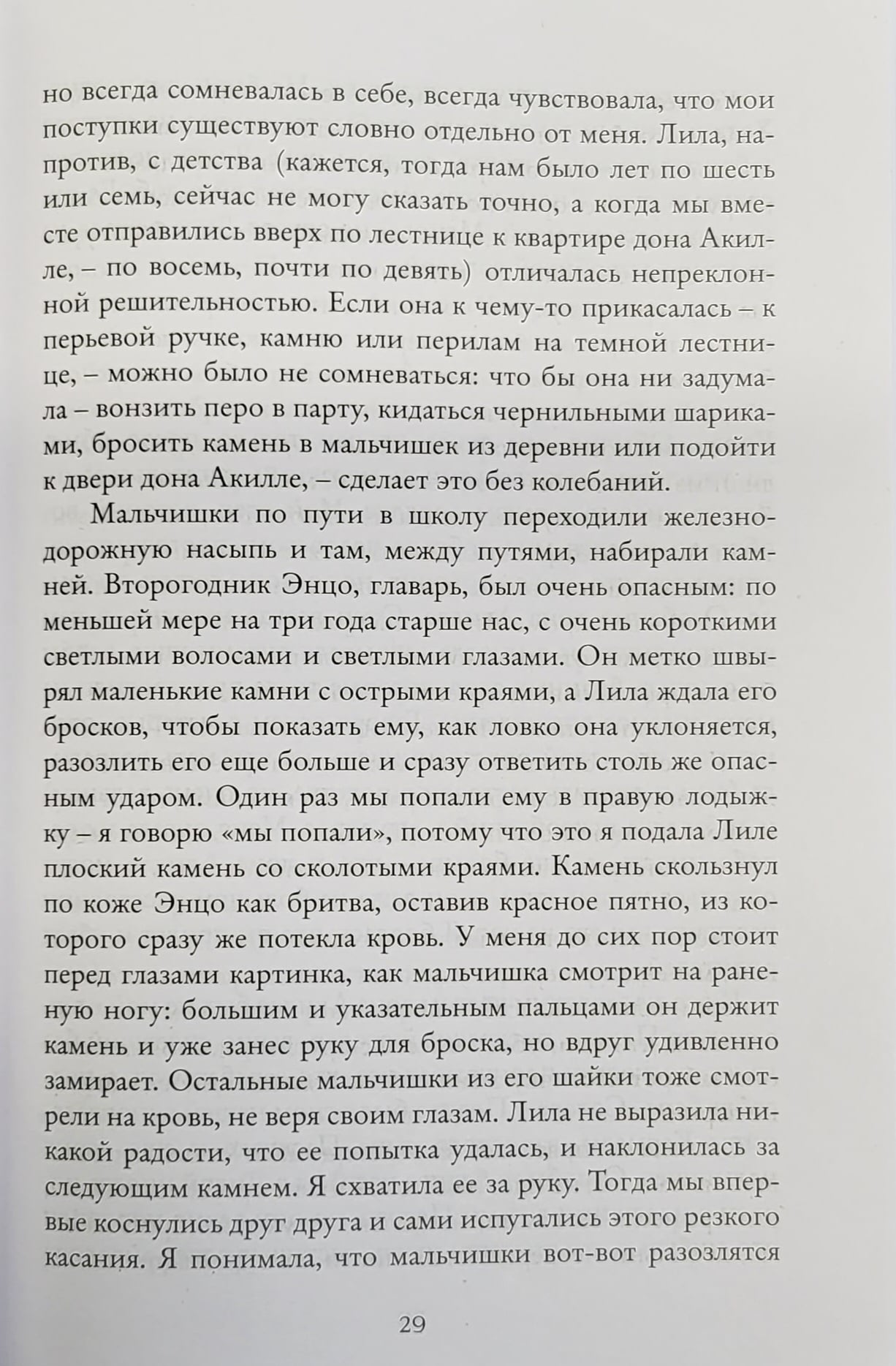 "Genius Girlfriend" - the first novel in the series "Neapolitan Quartet". This is a story about the childhood of two girls from a poor Neapolitan neighborhood and the beginning of a lifelong friendship. The first time the girls' paths will separate after elementary school. Family circumstances force one of them to drop out of school and go to work in her father's cobbler's shop. Throughout their lives, the invisible rivalry that accompanies true intimacy will lead them down different paths. Each of the friends will strive to become the best, each will know both success and disappointment, both expect great trials and tragic events. But the strong thread of childhood friendship, which sometimes binds people even against their will, will make Leela and Helena return to each other again and again.