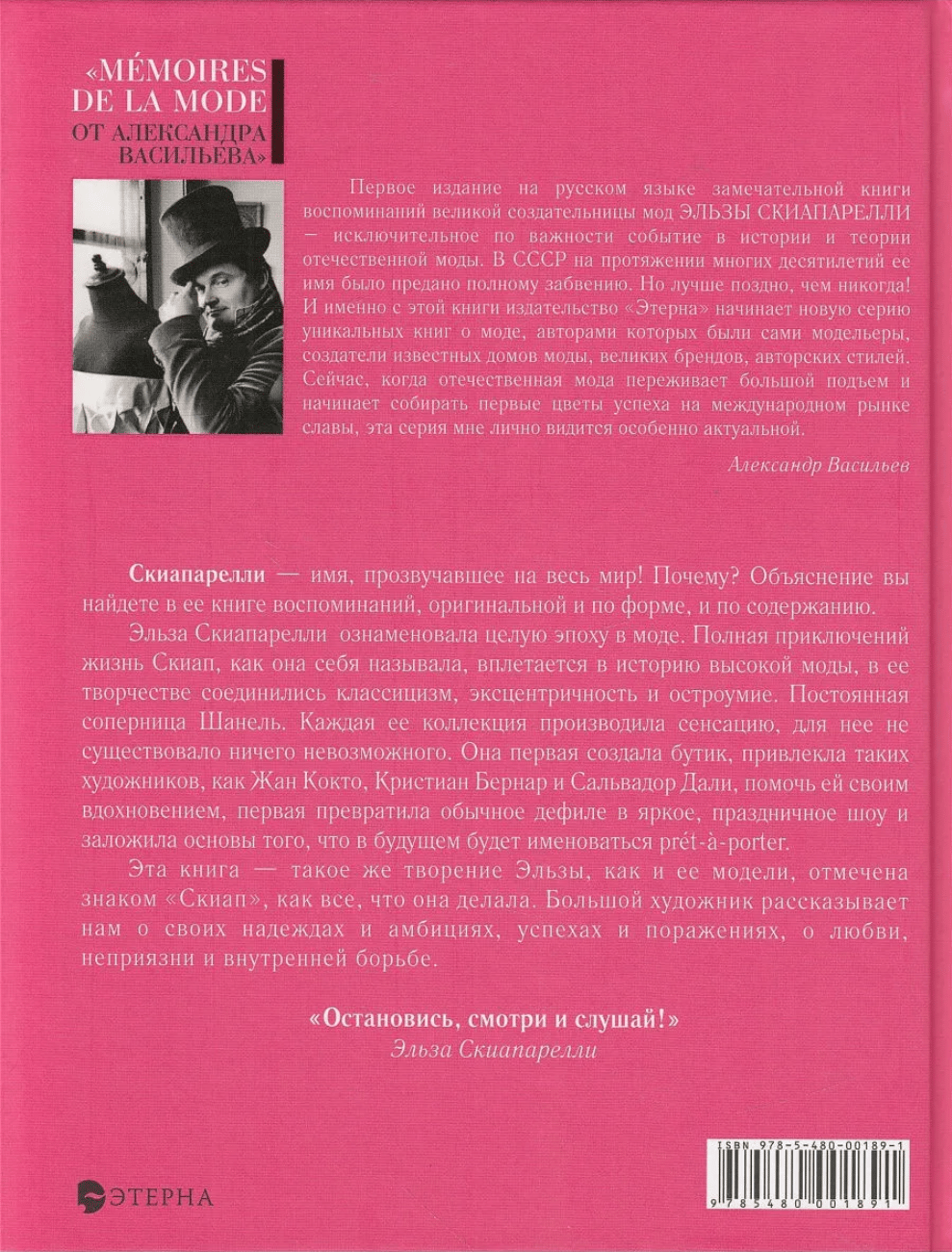 This book is as much Elsa's creation as her designs—it bears the "Schiap" seal, like everything she did. This great artist tells us about her hopes and ambitions, successes and failures, love, hatred, and inner struggle.