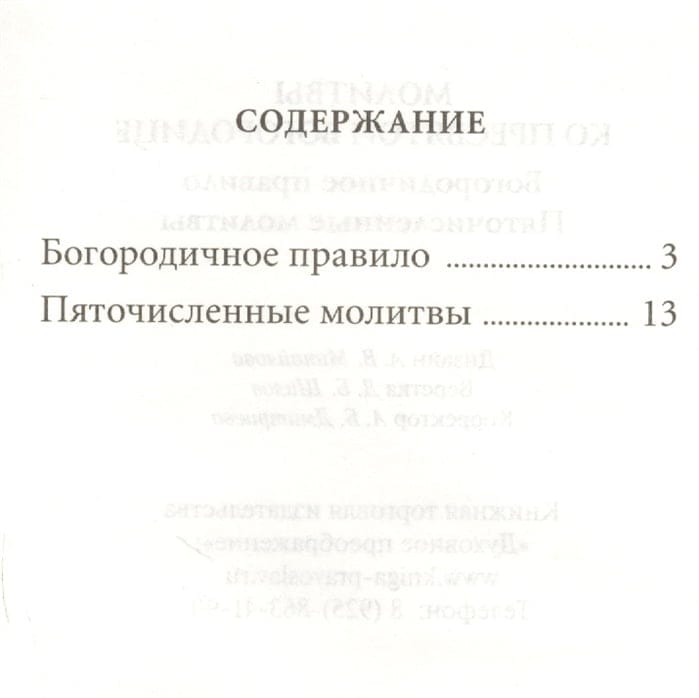 The collection "Prayers to the Most Holy Theotokos" contains a description of several variants of the fulfillment of the Theotokos Rule, as well as the Pentecostal Prayers, a creation of St. Demetrius of Rostov.