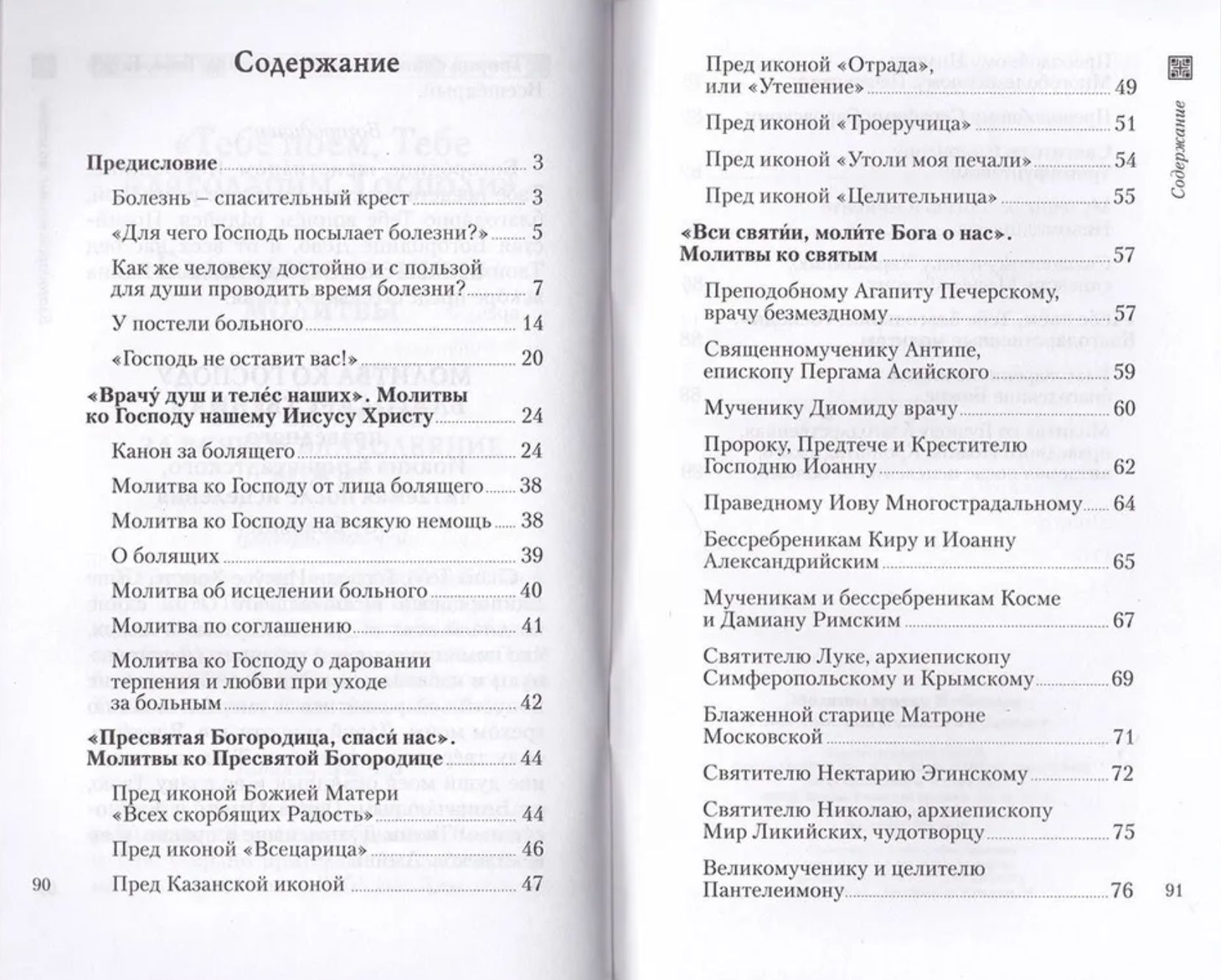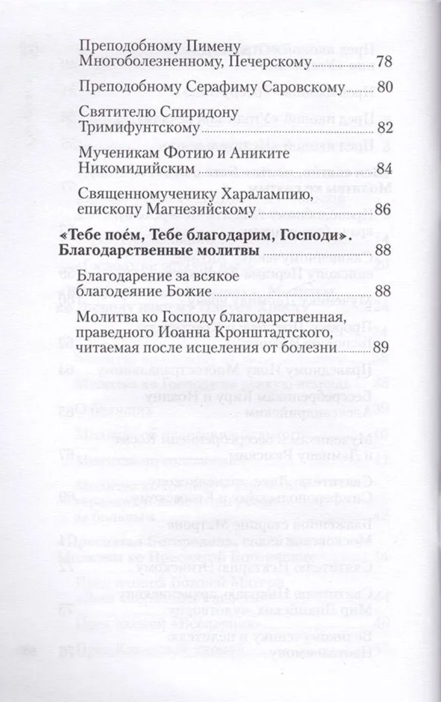 This collection includes prayers for reading by both the sick person and his loved ones: these are prayers to the Lord, to the Most Holy Theotokos before Her miraculous icons, to selected saints, and prayers of thanksgiving.