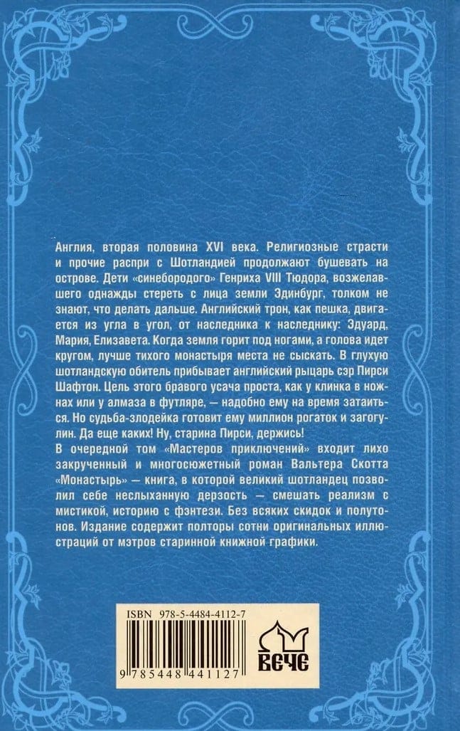 England, second half of the 16th century. Religious passions and other feuds with Scotland continue to rage on the island. The children of "blue-bearded" Henry VIII Tudor, who once desired to wipe Edinburgh off the face of the earth, are at a loss as to what to do next. The English throne, like a pawn, moves from corner to corner, from heir to heir: Edward, Mary, Elizabeth. When the ground burns beneath your feet and your head spins, there's no better place than a quiet monastery. The English knight Sir Piercie Shafton arrives at a remote Scottish monastery. This dashing mustachioed man's goal is as simple as a blade in its sheath or a diamond in its case—he must lie low for a while. But fate, the villain, has a million slingshots and twists in store for him. And what slingshots! Well, old Piercie, hold on!
