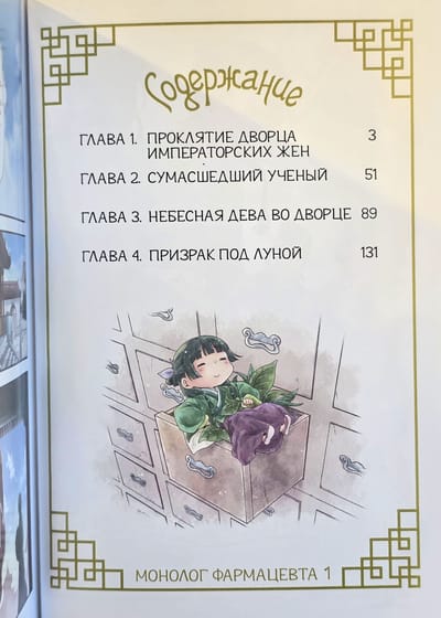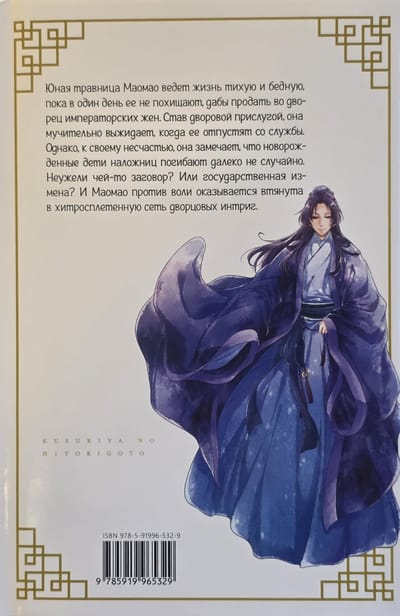 In the first volume of the manga "The Pharmacist's Monologue," the young herbalist Maomao leads a modest life until she is kidnapped and sold to the palace of the imperial wives. Becoming a servant, she patiently awaits her release, but soon notices that the concubines' newborn children are dying under mysterious circumstances. Maomao finds herself embroiled in dangerous palace intrigues, where she must unravel mysteries that threaten the lives of innocents. This manga is perfect for fans of adventure and mystery, as well as those who appreciate strong female characters. Suitable for teens and adults seeking a gripping read with elements of mystery and drama.
