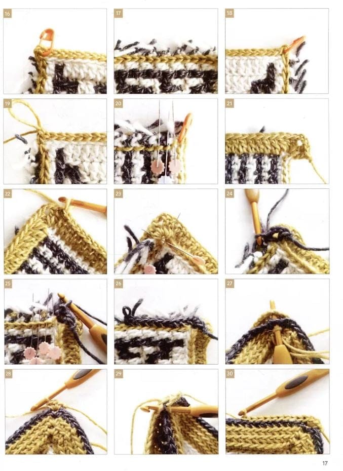 - a step-by-step master class with photographs, teaching the technique of mosaic crochet;
