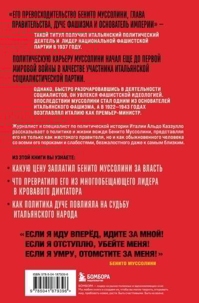 Journalist and specialist in the political history of Italy Aldo Cazzulo talks about the politics and life of the leader Benito Mussolini, presenting him not only as a cruel ruler, but also as an ordinary man with all his vices and weaknesses, ruthless even to those closest to him.