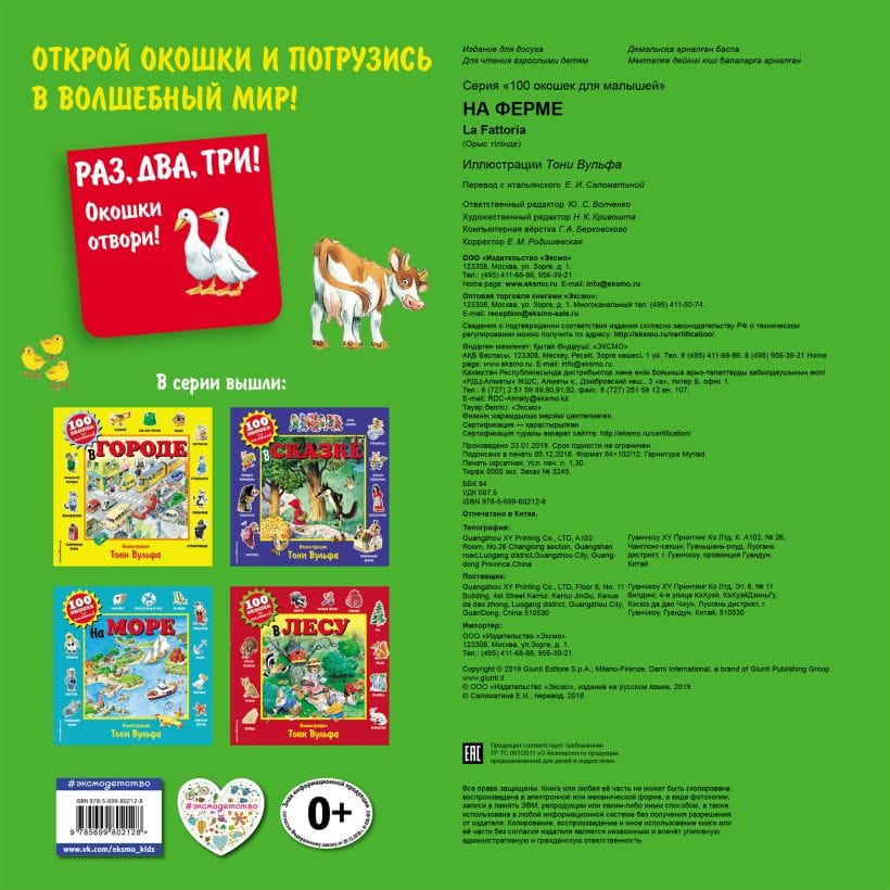 This book is sure to become one of your little one's favorites, as it is drawn by world-renowned Italian artist Tony Wolfe, who has created hundreds of wonderful illustrations for children's publications. Each spread of the book is a magnificent large illustration with many fun characters, with plenty of funny little things and opening windows. And underneath each window is a surprise - the most interesting information and the funniest illustration!