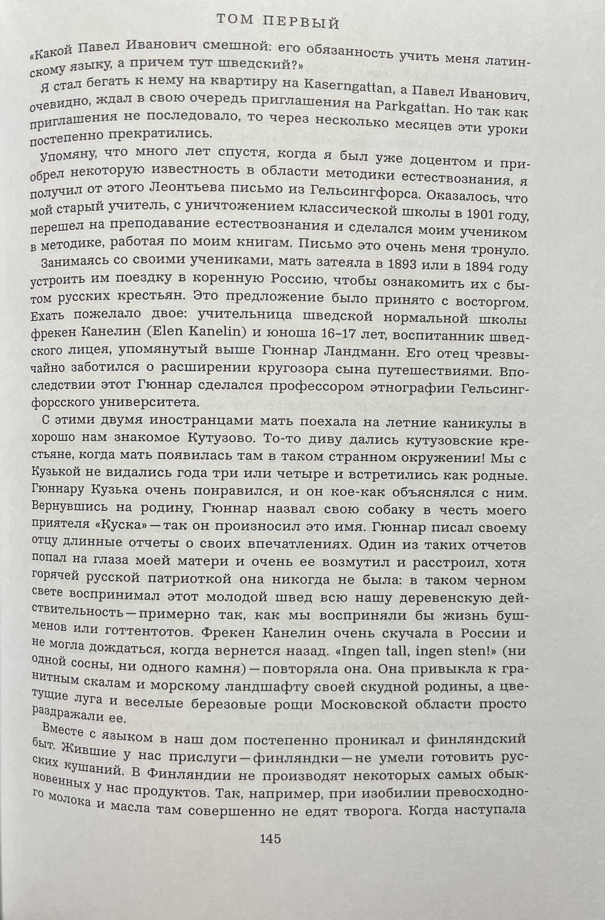 The first covers the period from the 1870s to 1930. It covers family genealogy, two gymnasiums (in Helsinki and St. Petersburg), university, the student protest movement, underground activities, imprisonment, exile, work in secondary and higher educational institutions, the author's development as a scholar, his family life, details of his life and work during the Revolution and the Civil War, and the struggle that erupted in the 1920s over teaching methods in Soviet schools.