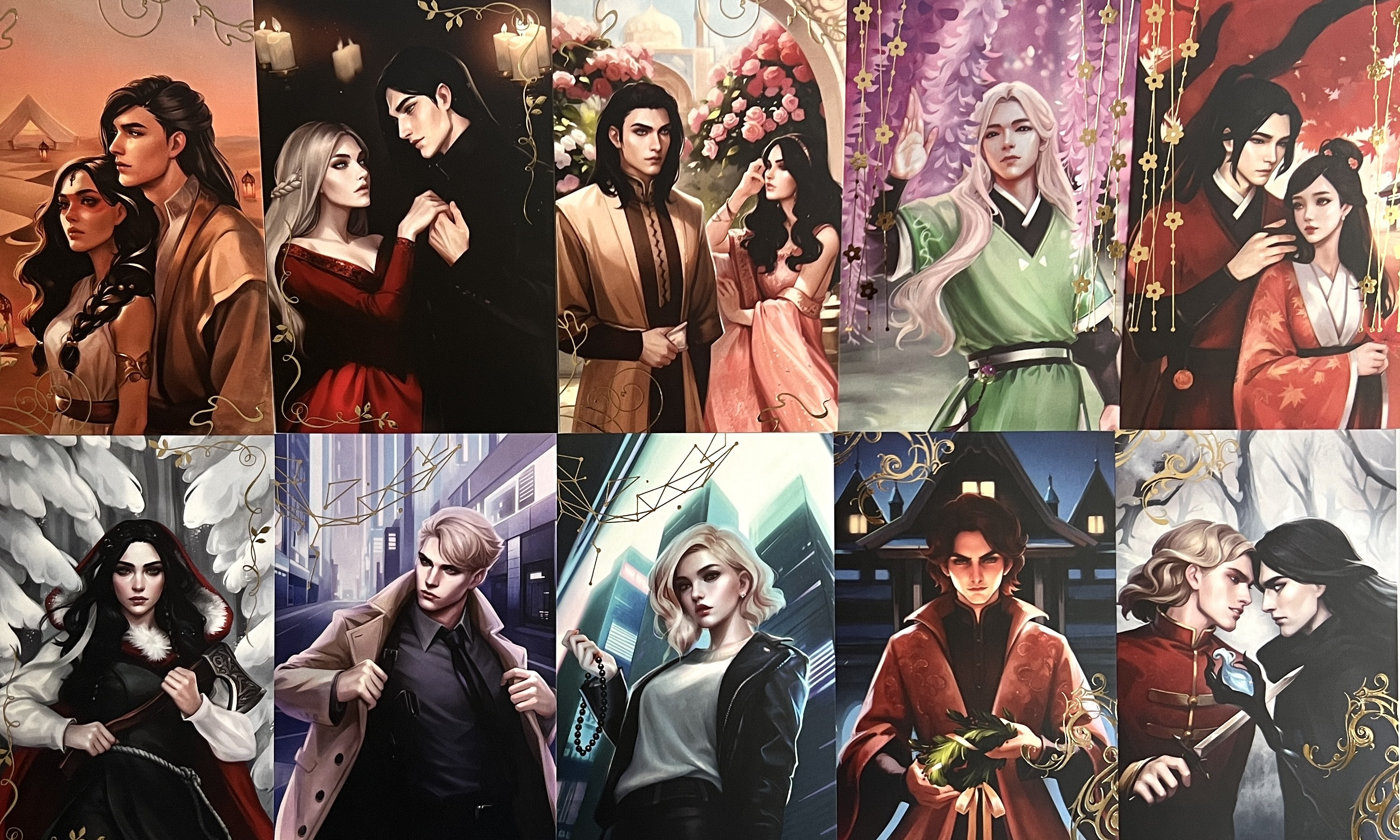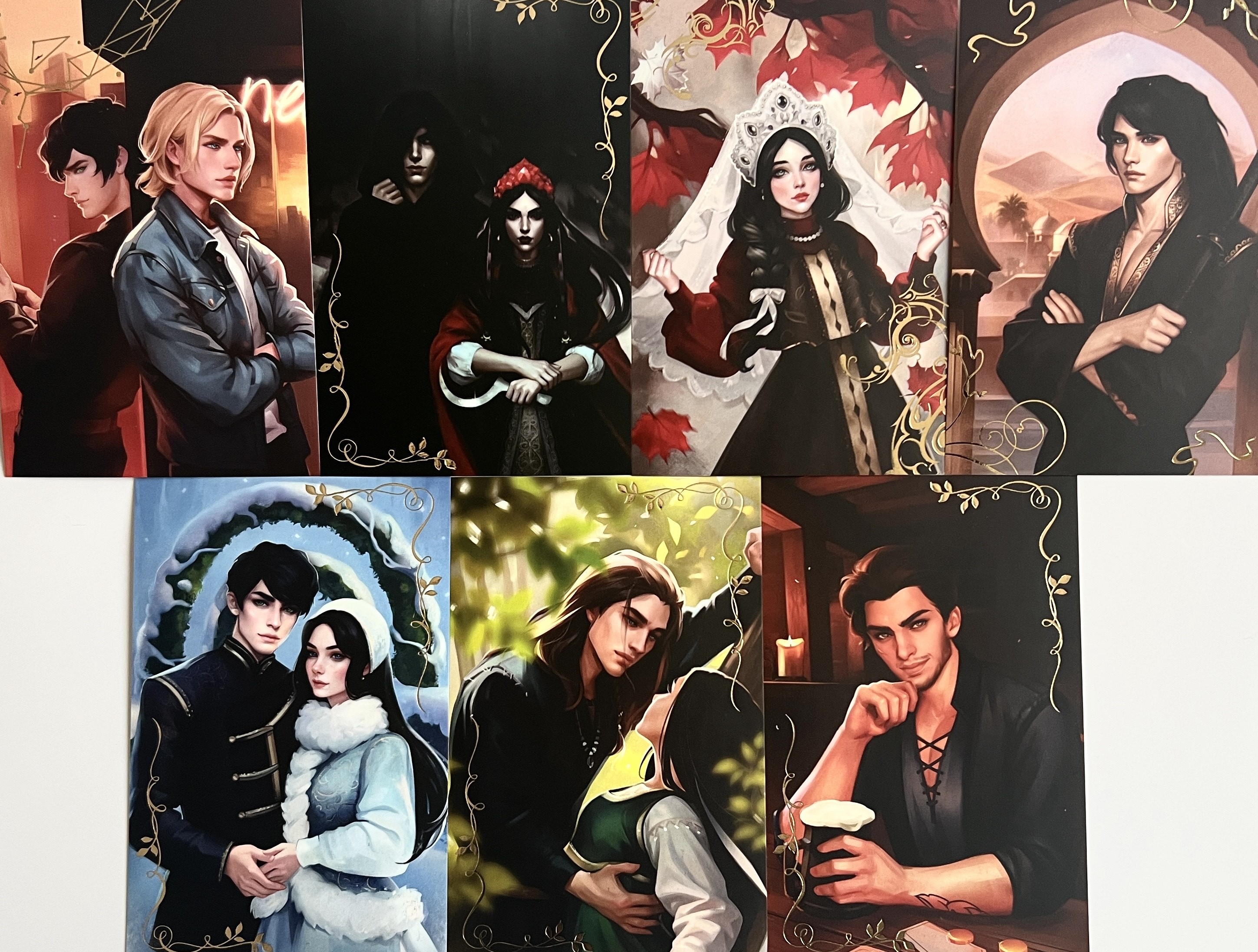 A set of cards with characters from Leah Arden's books - colorful, memorable and always heartwarming. Mara and Morok, Yara and Ilya, Oiro and Ilos, Asha and Rayan - all brought to life by the magical brush of artist Ita Gotdark.