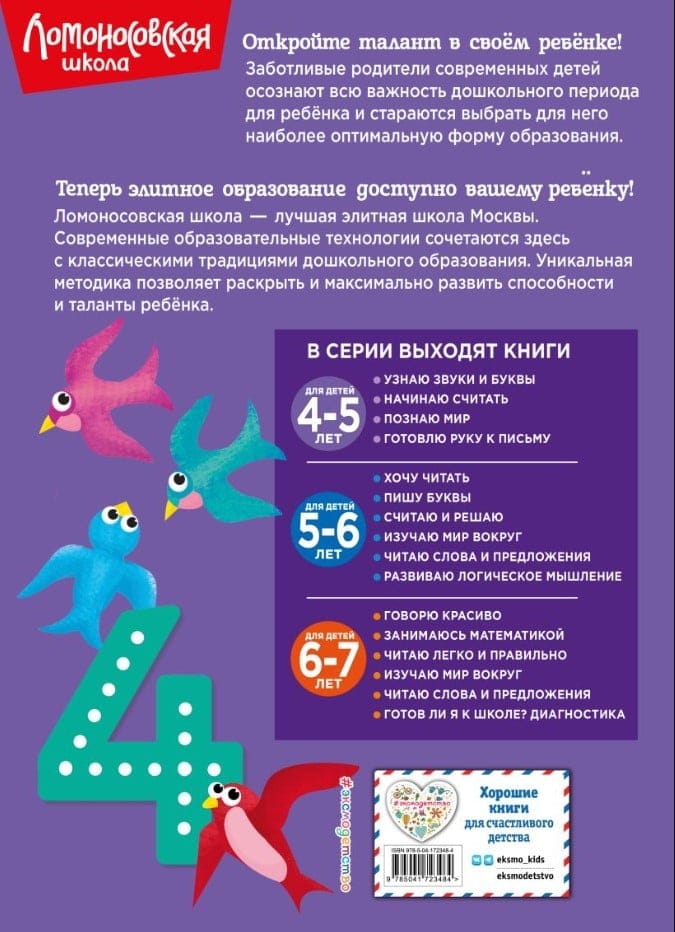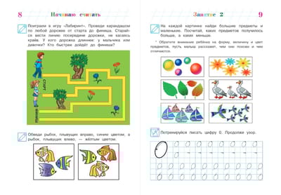 The legendary series of educational aids for child development and preparation for school is now in a new design! A method that has been tested in practice and has proven its effectiveness, skillfully combining modern teaching technologies with the best classical traditions of Russian education, will contribute to the development of mathematical thinking and cognitive abilities in preschoolers. By completing interesting game tasks, the child will become familiar with the numbers of the first ten, the concepts of "more", "less", "equal", ordinal counting, learn to compare objects by quantity, write numbers, solve examples of addition and subtraction using a number line. The knowledge, skills and abilities that the preschooler will acquire as a result of the classes will allow him to feel confident in himself and use them successfully in the future. In addition, the manual contains methodological recommendations that will tell you how to properly organize a lesson with a child. The book is intended for talented children 4-5 years old, their caring parents and caring teachers and can be used both for home schooling and in kindergarten classes.