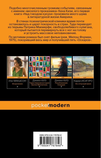 An iconic novel that ranks in the Times' top 100 most-read novels. Set in the sixties, a vibrant time of protest by a new generation against greed, depersonalization, war and violence. Liberalism against traditionalism, the individual against the establishment. The novel is stunning depth, exciting, makes you think about life, about justice, about the system and its infallibility, about the boundaries of insanity and normality, about freedom, about the will, about choice. A must-read. And also watch the movie "One Flew Over the Cuckoo's Nest" starring Jack Nicholson. Based on the novel, many plays have also been staged in different countries, including Russia. "Over the Cuckoo's Nest" is a raw and devastatingly honest depiction of the boundaries between sanity and insanity. "If anyone wants to feel the pulse of our times, let him read Keesey. And if all goes well and the order of things does not change, he will be read in the next century," wrote the Los Angeles Times. Indeed, even nowadays the book continues to live and does not lose its crazy popularity. The new translation was made by a young talented translator Dmitry Shepelev.