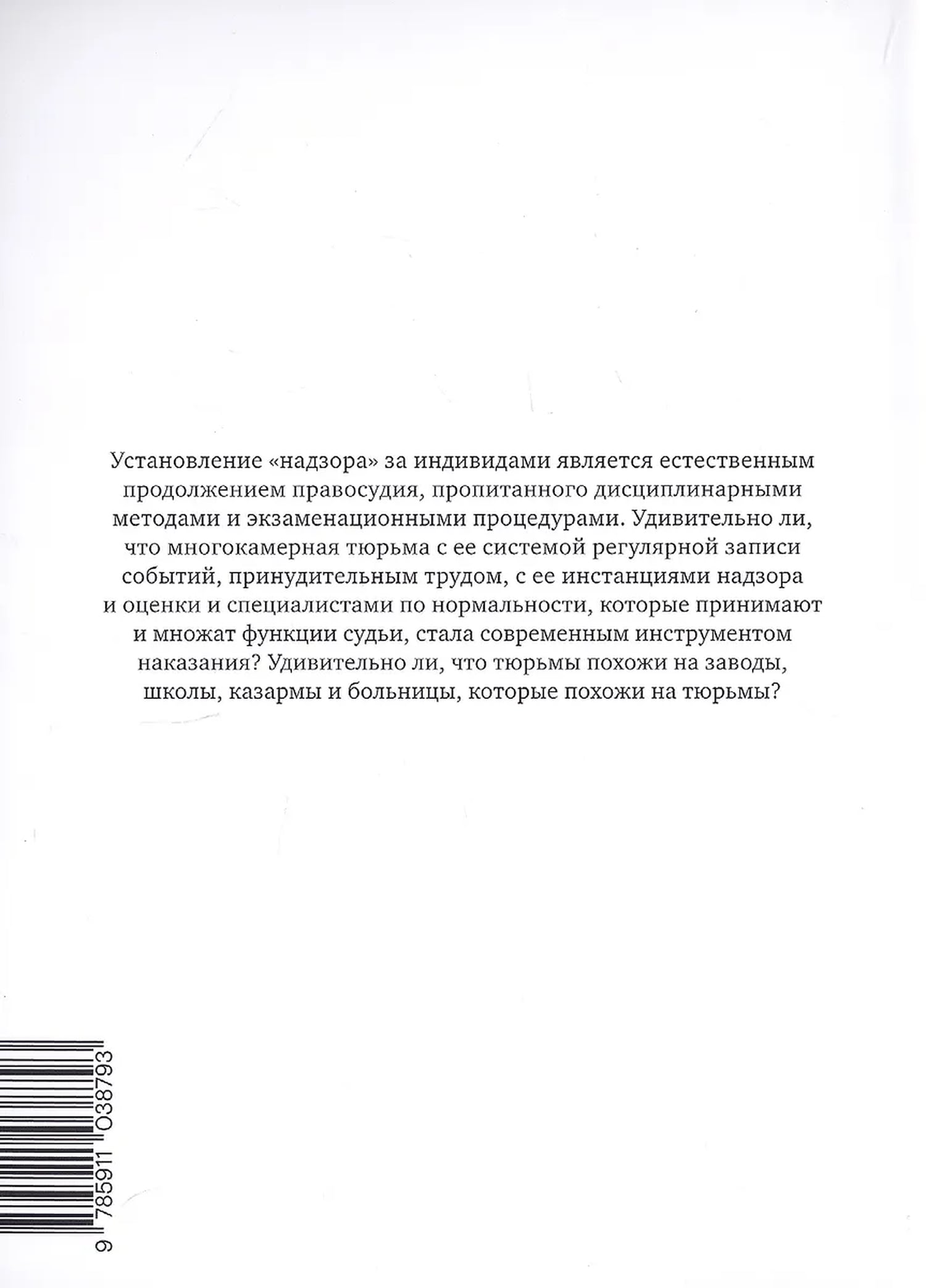 More than 250 years ago, Robert-François Damiens, who had attempted to assassinate King Louis XV, was quartered on the Place de Grève in Paris. Discipline and Punish, one of the most revolutionary books on modern social theory, begins with a description of his horrific execution. The bloody spectacle of the execution allows Foucault to demonstrate the differences between individual violence and state violence and to show how, over time, the primary object of state control becomes not the body, but the soul of the criminal. The evolution of methods of surveillance and punishment gradually transforms crude state violence into a complex mechanism of total biopower, enveloping modern people in their everyday lives and shaping a society of total control.