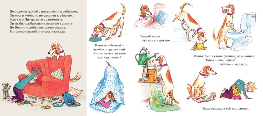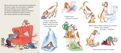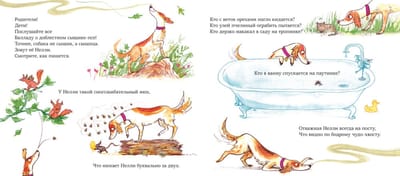A dog named Nellie has an excellent sense of smell. What happened to the sock and the ball? Who's throwing nuts from the branches? Who's attacking the bee hive? Nellie the sleuth knows no rest, she will solve any riddle. On Mondays, Nelly and her master - six-year-old Peter - hurry to school, where she enjoys listening to the children read books aloud. But one morning, the students discover that the entire school library has disappeared!.... Clever Nellie takes on the case. For children under 6 years old.