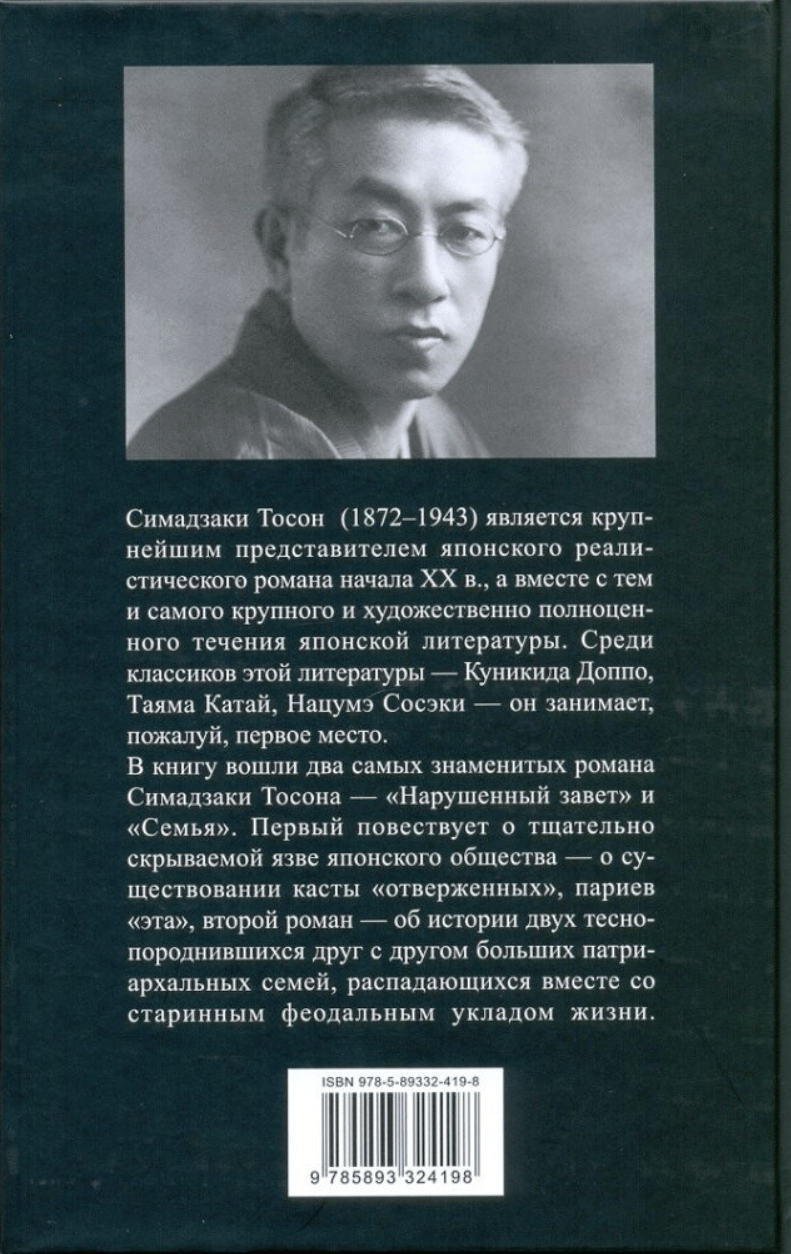 Shimazaki rose to fame with the publication of his novel "Hakai" ("Broken Testament") in 1904-1905, which addressed the issue of social inequality—the Japanese belonging to the outcast caste, or "eta." Shimazaki Toson (1872-1943) graduated from the Christian Meiji Gakuin University. Together with Tokoku Kitamura, he published the literary magazine "Bungakukai." He made a significant contribution to the development of naturalism in Japan. His father, Masaki Shimazaki, was a scholar. In 1899, Shimazaki and his wife moved from the capital to the remote provinces. For seven years, he taught in a rural school in northern Japan. During these years, he witnessed the monotony and tedium of rural life, which later became the subject of many of his works. He was baptized, but Christianity had no significant influence on him. The historical merit of the poet Shimazaki in the history of Japanese poetry is that he (together with Doi Bansui) finally established in Japan the form of the so-called “new verse” (shintaishi), which sharply broke with the traditions of feudal poetry and turned into the main type of new Japanese poetry.