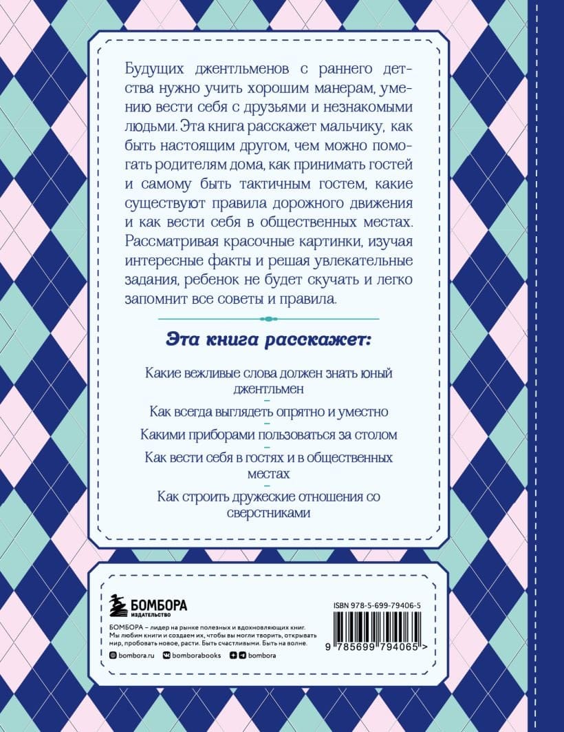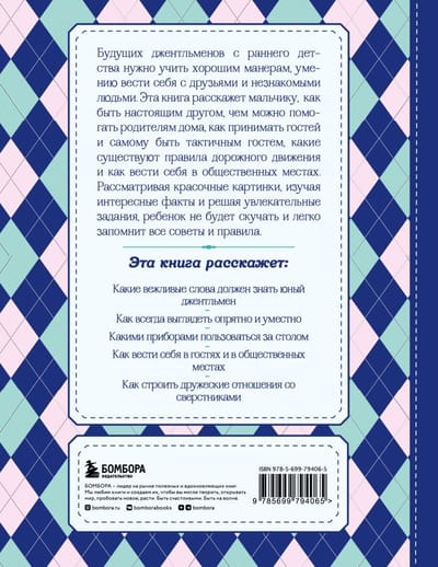 Future gentlemen should be taught good manners and how to behave with friends and strangers from an early age. This book will tell the boy how to be a true friend, how to help parents at home, how to receive guests and be a tactful guest, what are the rules of the road and how to behave in public places. Looking at the colorful pictures, learning interesting facts and solving fascinating tasks, the child will not be bored and will easily remember all the tips and rules.