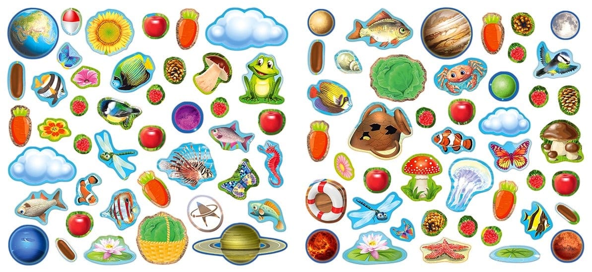 "Kitten" from the "Stickers for Kids" series is a manual for child development with disposable stickers. The kid will have to compare two pictures, find the missing details and complete them with stickers. The book contains everything that children love: color illustrations with fairy-tale animals, funny stickers and fun tasks with a game element. Kind, bright pictures will turn educational lessons into an interesting game. The book trains attention and memory, develops logic, fine motor skills and speech, replenishes vocabulary, and will become a wonderful manual for playful classes at home or in kindergarten. The creative album is perfect for the youngest children and for family leisure. Children and parents will enjoy the time spent together. Published on coated paper, in a soft cover.