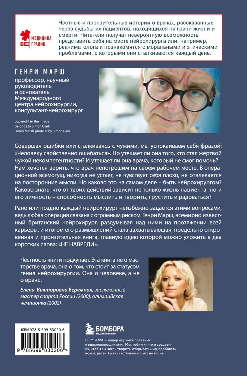 Sooner or later, every neurosurgeon inevitably asks himself these questions, because any operation involves enormous risk. Henry Marsh, a world-famous British neurosurgeon, has pondered them throughout his career, and the result of his reflections is a fascinating, extremely frank and poignant book, the main idea of which can be summarized in two short words: "do no harm.