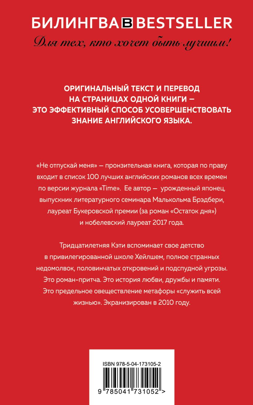"Don't Let Me Go" is a poignant book that is rightly ranked by Time magazine as one of the 100 best English novels of all time. Its author is a Japanese-born, Malcolm Bradbury Literature Seminar graduate and Booker Prize winner (for his novel The Rest of the Day) and 2017 Nobel Laureate. Thirty-year-old Katie recalls her childhood at the privileged Hailsham School, full of strange misunderstandings, half-revelations and underlying menace. This is a parable novel. It is a story of love, friendship and memory. It is the ultimate objectification of the metaphor of "serving with one's life." Screened in 2010.