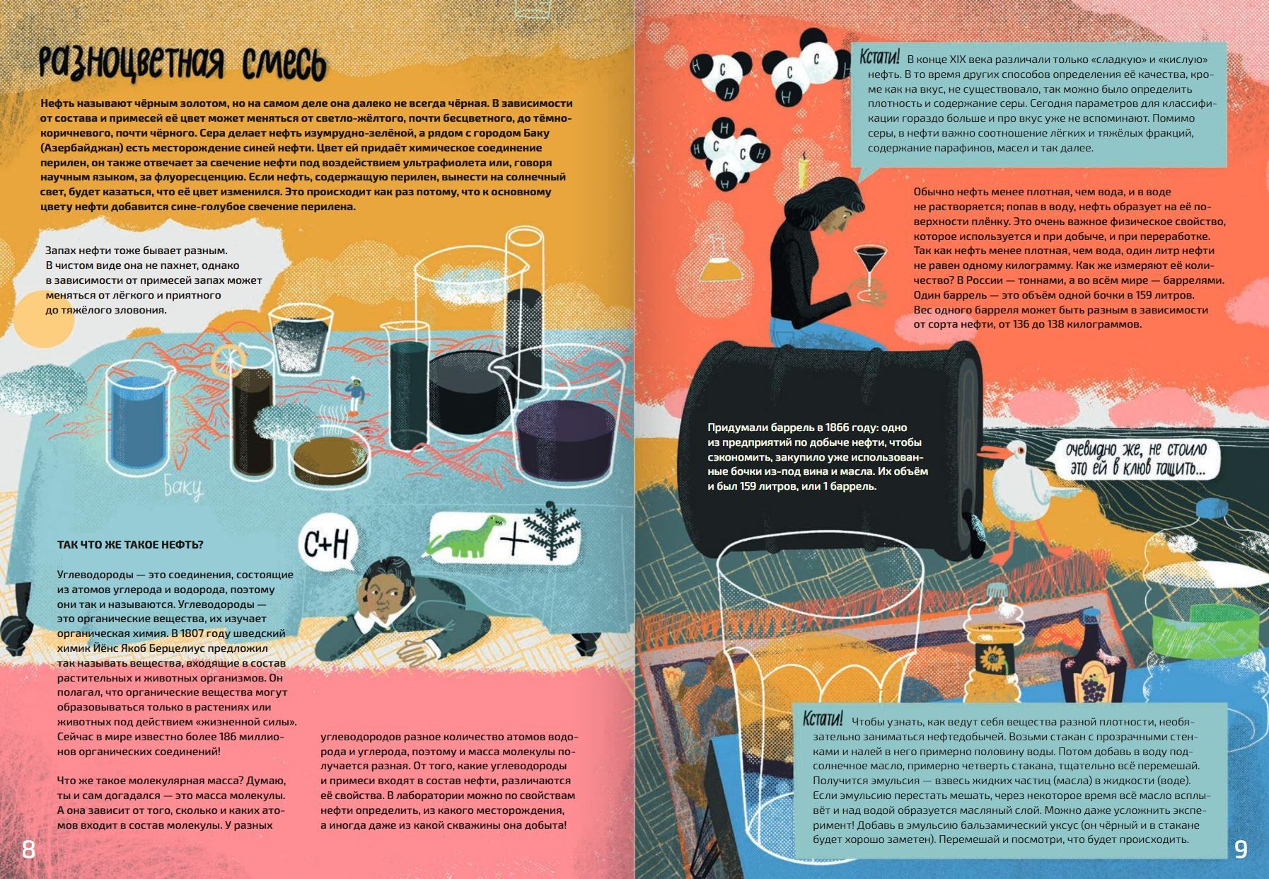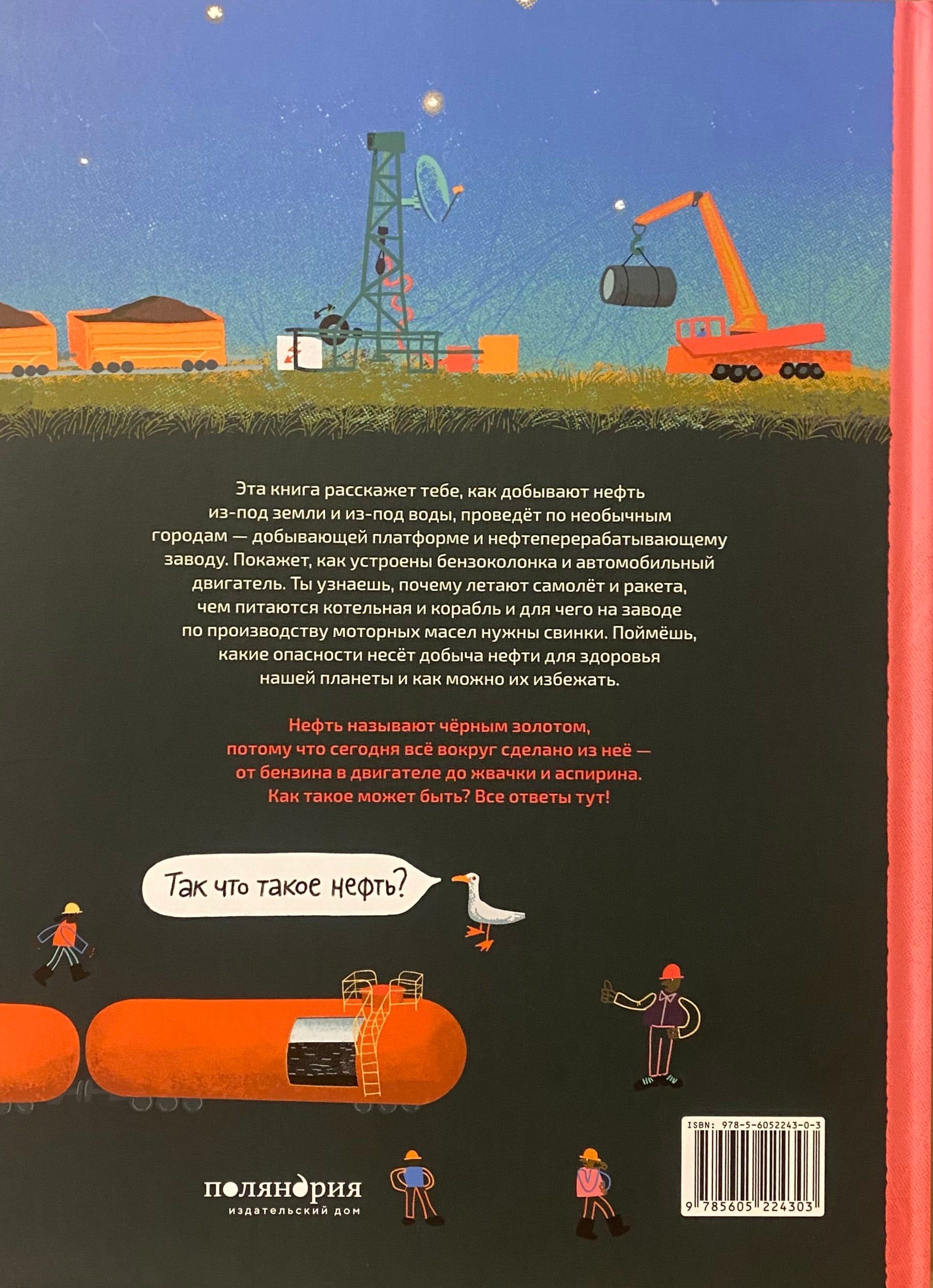 This book will tell you how oil is extracted from underground and underwater, and will take you to unusual cities — a production platform and an oil refinery. It will show you how a gas station and a car engine work. You will learn why an airplane and a rocket fly, what a boiler room and a ship eat, and why pigs are needed at a motor oil plant. You will understand what dangers oil production poses to the health of our planet and how to avoid them.