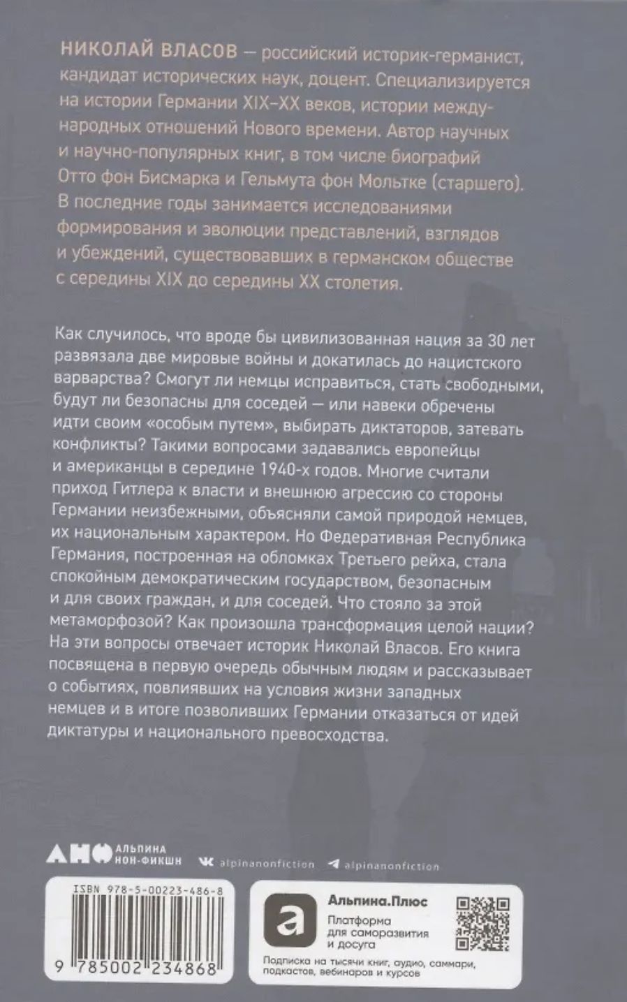 Many considered Hitler’s rise to power and external aggression from Germany inevitable, explaining it by the very nature of the Germans, their national character. But the Federal Republic of Germany, built on the ruins of the Third Reich, became a calm democratic state, safe for both its citizens and its neighbors. What was behind this metamorphosis? How did the transformation of an entire nation occur? Historian Nikolai Vlasov answers these questions in his book.