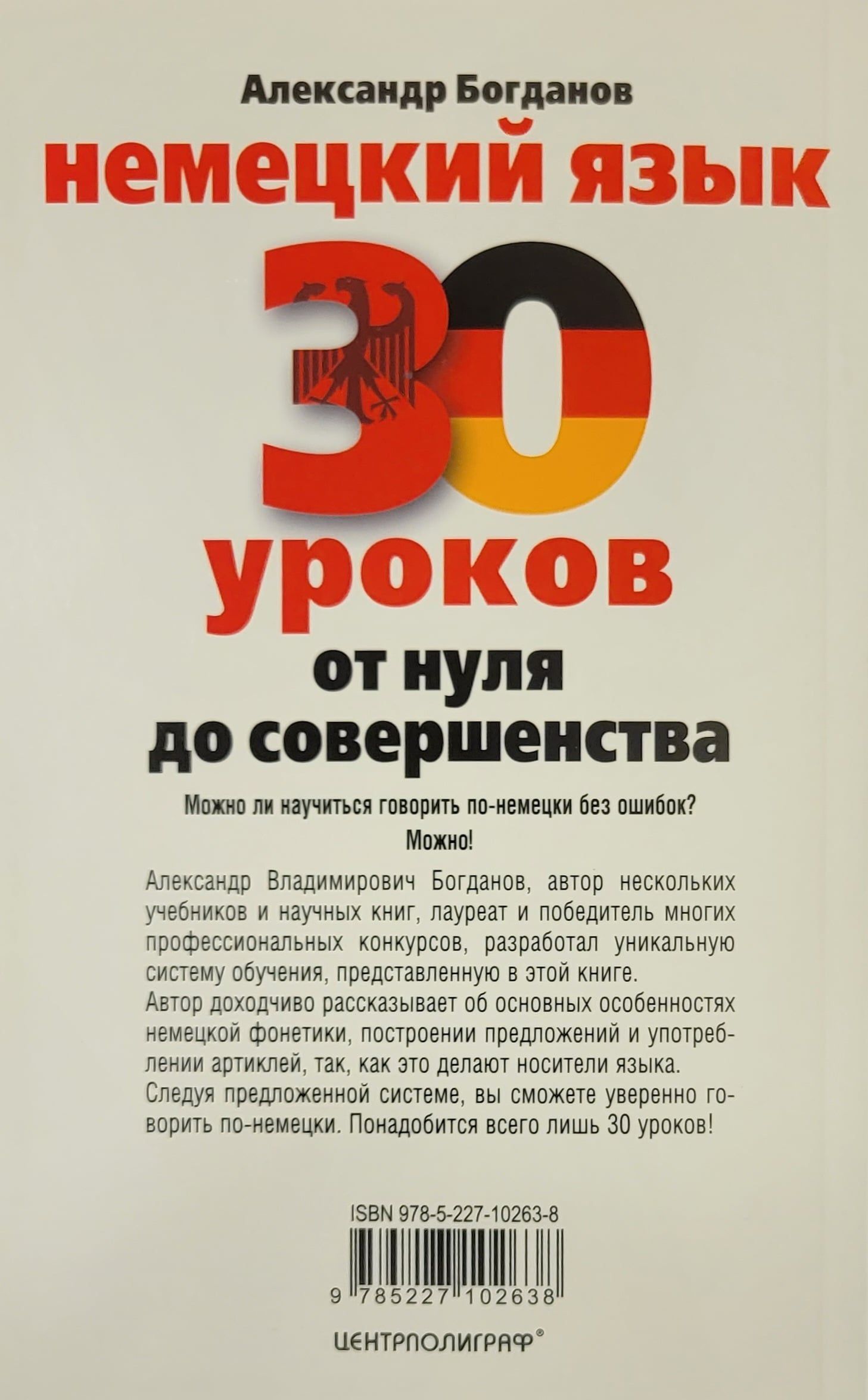 A.V. Bogdanov, the author of several textbooks and scientific books, as a result of many years of teaching practice has developed a fail-safe teaching system that he has been successfully using since 1993. Following it, you will be able to speak German confidently in just 30 lessons.