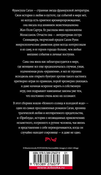 This collection includes "A Little Sun in Cold Water" - one of Sagan's most celebrated novels, a chronicle of tragic love and inevitable betrayal, and "The Stray," a story about the unexpected adventures of an inconspicuous person, mired in routine, whose life and ideas about himself are turned upside down when he accidentally finds a treasure - and even more than one.