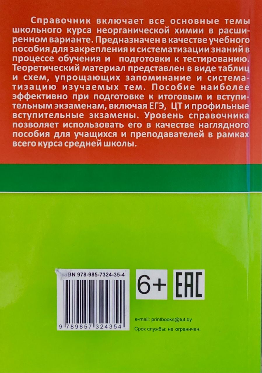 This manual is compiled in the form of tables, systematizing and summarizing theoretical information on the school course of inorganic chemistry. The book presents all sections of inorganic chemistry studied in secondary school in an accessible form. It is recommended to use the manual for group work at school and individual lessons at home.