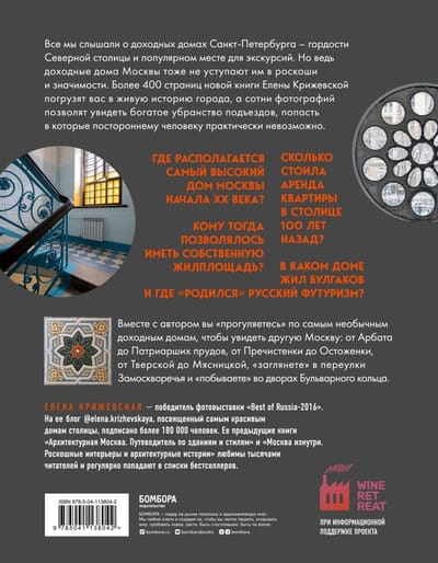 "It's better to have a tenement house in Moscow than a gold mine in Siberia." Popular wisdom. We've all heard of the tenement houses of St. Petersburg—the pride of the "northern capital" and a popular tourist destination. But Moscow's tenement houses are no less luxurious and significant. They were also built by the best architects of their time, richly decorating their facades and entrance halls. Yet, for some reason, we hear about them less often. In her new book, photographer, blogger, amateur local historian, and writer Elena Krizhevskaya will prove that the real Moscow is not only the Kremlin, the City, and Stalinist skyscrapers, but also hundreds of tenement houses located in the very heart of the city. You'll learn their stories and peer inside. The houses where Bulgakov and Lilya Brik lived, the capital's first skyscrapers, Gothic and Venetian styles, wrought-iron staircases and unique stained-glass windows—open this book and see for yourself that a Moscow apartment, even more than a hundred years ago, was a symbol of wealth and an object of desire. Every page of this illustrated edition is a living snapshot of Russian history, preserved to this day.