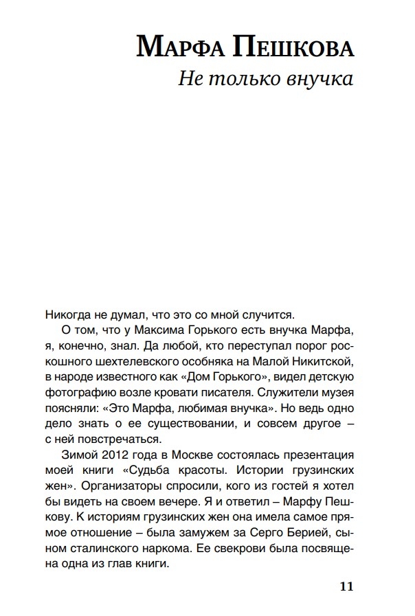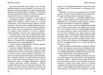 "Each of the book's heroes has accomplished and continues to accomplish great things. Not with the goal of public recognition. Meeting them revealed the destinies and places of genius in a different way. For me, St. Petersburg is Moika Street and Building 12, where Pushkin lived and met his final resting place, along with its director, Galina Sedova. Yerevan is the Sergei Parajanov Museum and its creator, Zaven Sargsyan. Tarusa is the houses of Paustovsky and Tsvetayev and their caretakers, Galina Arbuzova and Elena Klimova. Kislovodsk is the mansions preserved thanks to Boris Rosenfeld. Peredelkino is the dacha of Andrei Voznesensky and Zoya Boguslavskaya. Tashkent is Malik Kayumov, who participated in the opening of Tamerlane's tomb. Moscow—the addresses of Bulgakov and his main biographer Marietta Chudakova, Mayakovsky and Alexander Ushakov, Svyatoslav Richter and his close friend Vera Prokhorova, the Messerer-Plisetsky apartment on Tverskaya Street, and the mansion designed by Shekhtel, where Gorky and his granddaughter Marfa Peshkova lived…” (Igor Obolensky).