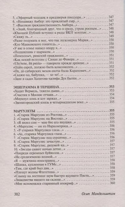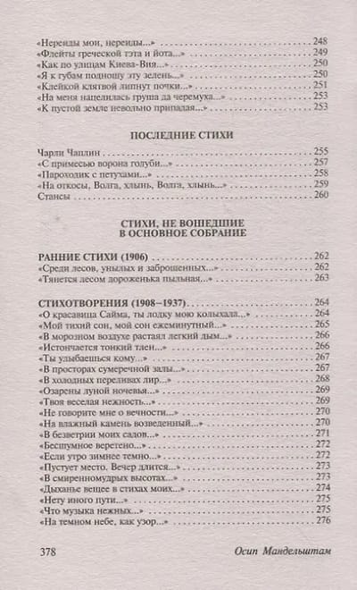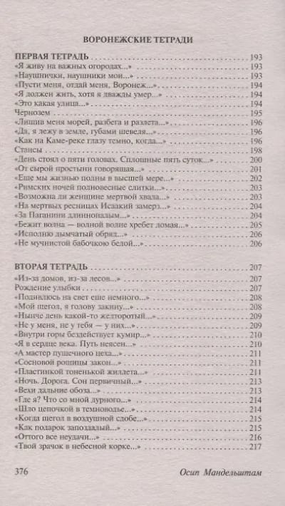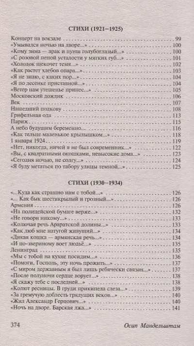 This edition includes both well-known and lesser-known poems by the Russian poet Osip Mandelstam. It includes poetry collections from the author's lifetime ("Stone," "Tristia," "Poems 1921-1925"), poems from 1930-1937, grouped chronologically, and poems not included in the collections.
