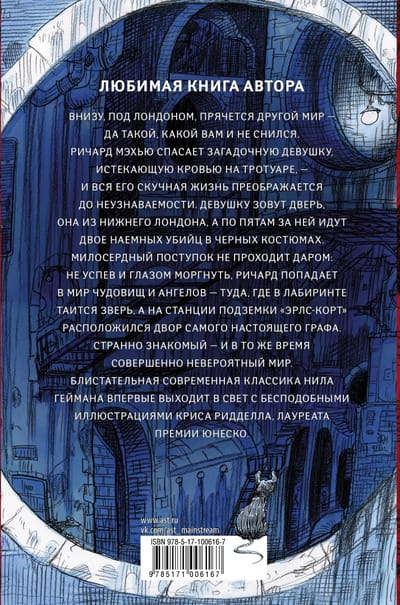 Richard Maheu lives in London, rents an apartment, works at an investment company, and his fiancée is quite intelligent, ambitious, and simply charming. Everything is going according to plan. But his measured life literally collapses when Richard meets a wounded girl on the street, begging for help. A gesture of mercy will open the door to a wondrous and dangerous world for the young man! Lower London, where time and space defy the laws of physics, mortal danger looms large, rats control people, and angels drink wine from the sunken city of Atlantis. Together with his new friends, Richard embarks on an incredible mission. No one knows who the enemy is, anyone could be a traitor, and every door is a gateway to hell...