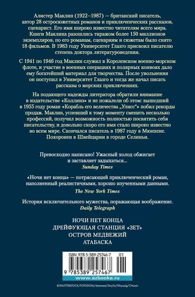 Alistair Maclean (1922-1987) was a British writer, author of 28 thriller novels and adventure stories, and screenwriter. His name is widely known to readers around the world. Maclean's books have sold more than 150 million copies, and 18 films have been made based on his novels, screenplays and stories. In 1983, the University of Glasgow awarded the writer a doctorate in literary studies. From 1941 to 1946 Maclean served in the Navy, took part in military operations and polar convoys, which gave him a wealth of material for creativity and determined the themes of his best books.
