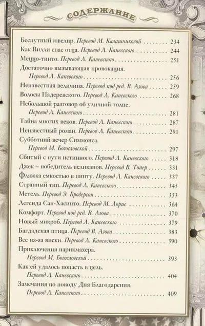 Stylishly designed gift edition with three-sided gold trim and lasso. The binding of the book is decorated with decorative gold and silver embossing. The text of the edition is printed on coated paper with original design. Bank accountant, convict, pharmacist, writer - all these words are suitable for describing the different life periods of one and the same person - William Sidney Porter, known to the world under the pseudonym O. Henry. Unboring life in many ways and helped the remarkable writer to become the author of such popular in many countries, full of humor and sadness, but always filled with life dynamics of stories. An inexhaustible supply of jokes and puns, jabs of satire, soft humor: this is the basis of O. Henry's works. If you appreciate humor, love to laugh, you will never regret that you have bought this book, where the elegance of the text is complemented by the magnificent images of characters, literally coming to the real world from the pages of illustrations, published for the first time and prepared especially for this edition. This volume includes only a small portion of O. Henry's stories; others will be included in subsequent volumes, which will make up an almost complete collection of the works of this most popular novelist.
