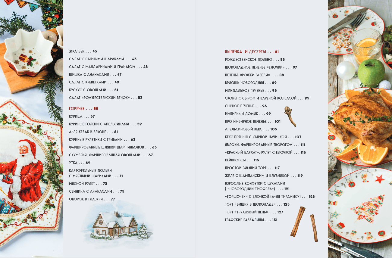 - And what would we do without sweets: red velvet, Christmas tree roll, gingerbread house, and almond stollen.