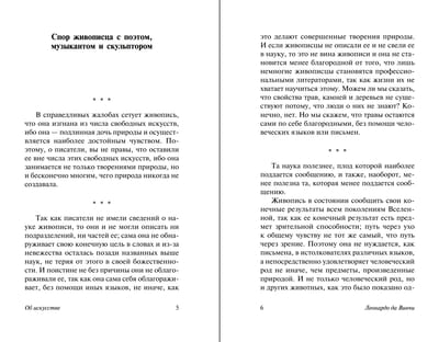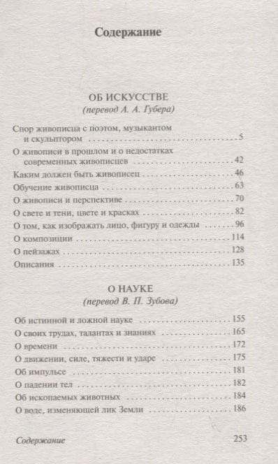 The book publishes selected natural science works by Leonardo da Vinci and his "Treatise on Painting". The translation into Russian was made by the greatest scientists of the 20th century A.A. Guber and V.P. Zubov.