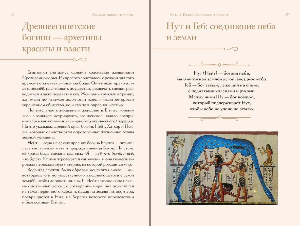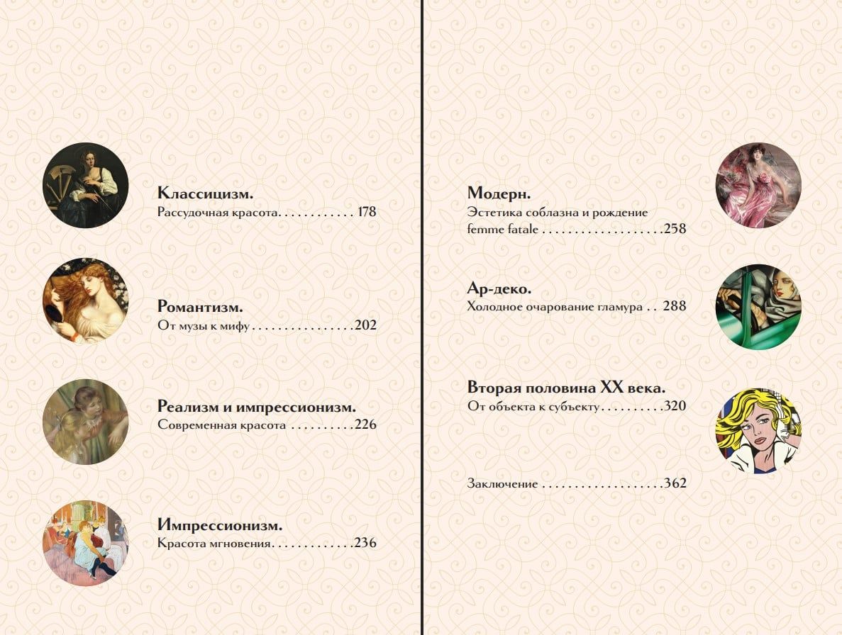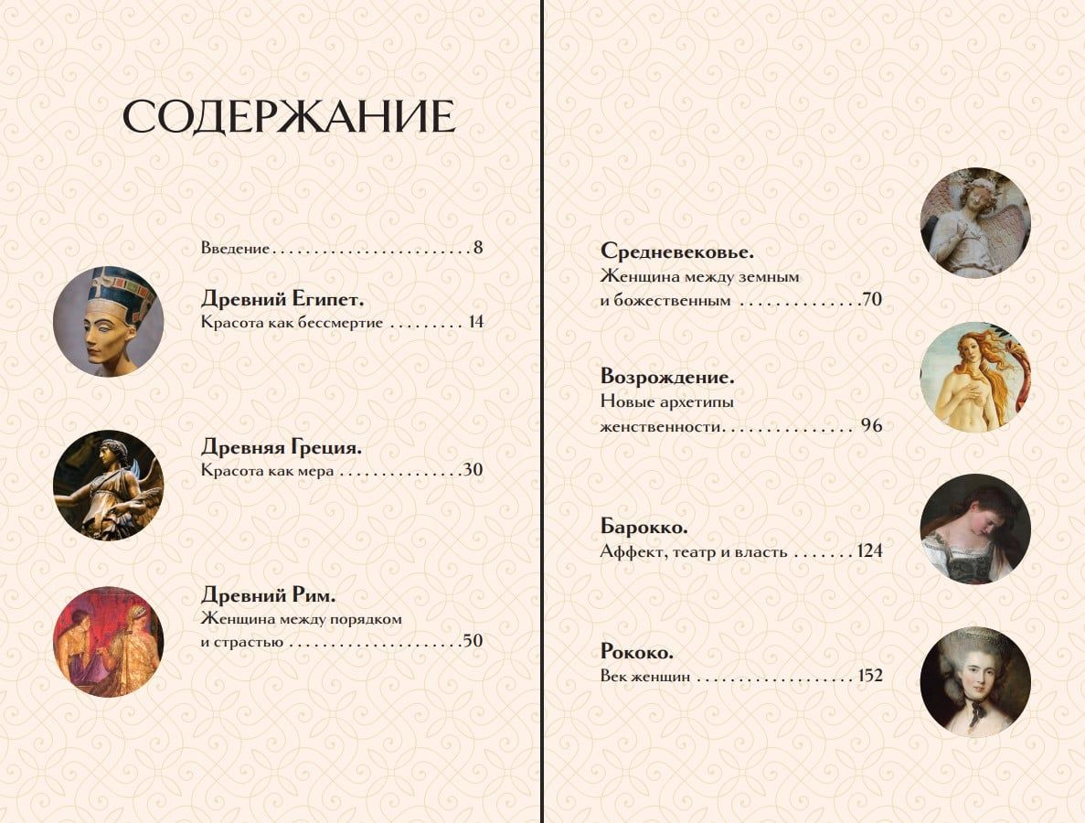 A large number of illustrations allow one to experience the transformation of the feminine ideal and not only learn about the history of the female image in art, but also trace how the view of women changed in the works of great masters—from an idealized image to a living and individual one.