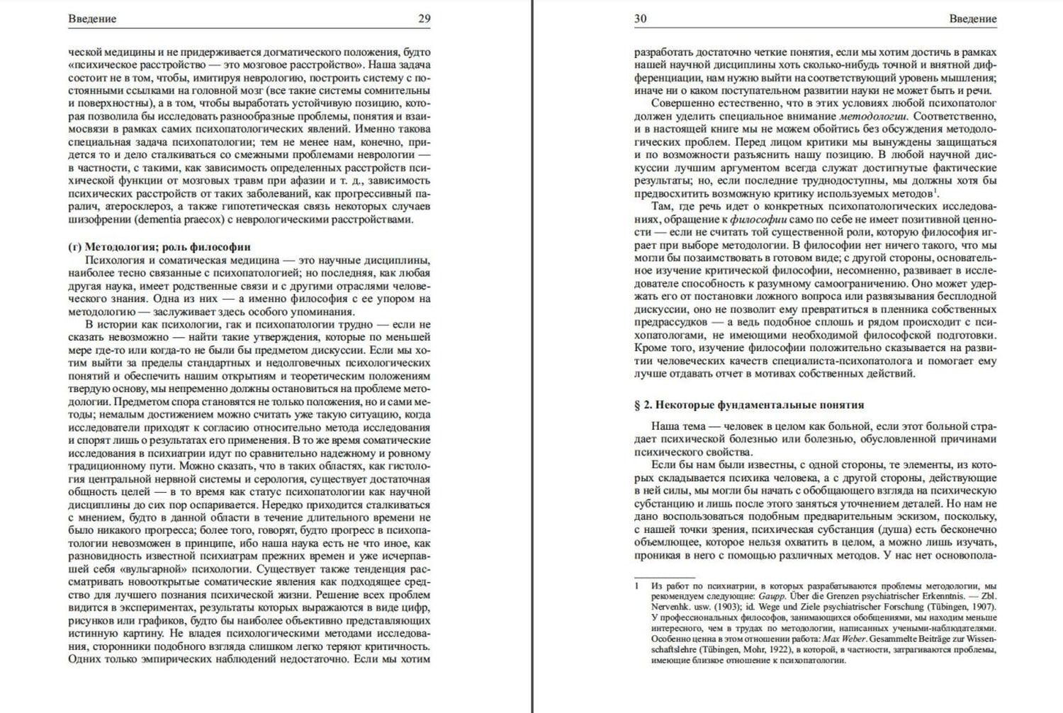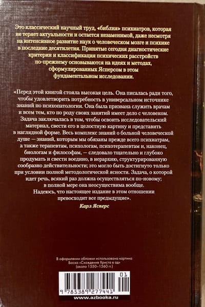 Karl Jaspers (1883–1969) is famous primarily as a philosopher, one of the founders of existentialism, whose influence was noted by Albert Camus, Jean-Paul Sartre, and Hannah Arendt. However, Jaspers was not only a philosopher, but also a psychiatrist, and his doctoral dissertation, General Psychopathology, was the result of several years of work in a psychiatric hospital. Jaspers was deeply dissatisfied with the approaches to the study and treatment of mental illness that existed at his time. He believed that this branch of medicine was in deep crisis, and set himself the ambitious task of developing new scientific foundations for psychiatry. In fact, he created the philosophy of psychiatry, developed a new language and categorical apparatus for describing and classifying mental disorders. The first edition of General Psychopathology was published in 1913, when Jaspers was 30 years old; The book became his life's work, and with each reprint he revised and expanded it - right up until 1959, when the 7th edition was published. This is a classic of psychiatric literature, a reference book for psychiatrists, which, despite the intensive development of the sciences of the human brain and psyche in recent decades, remains indispensable. The diagnostic criteria accepted today, as well as the classification of mental disorders, are still based on the ideas and methods set out in this work.