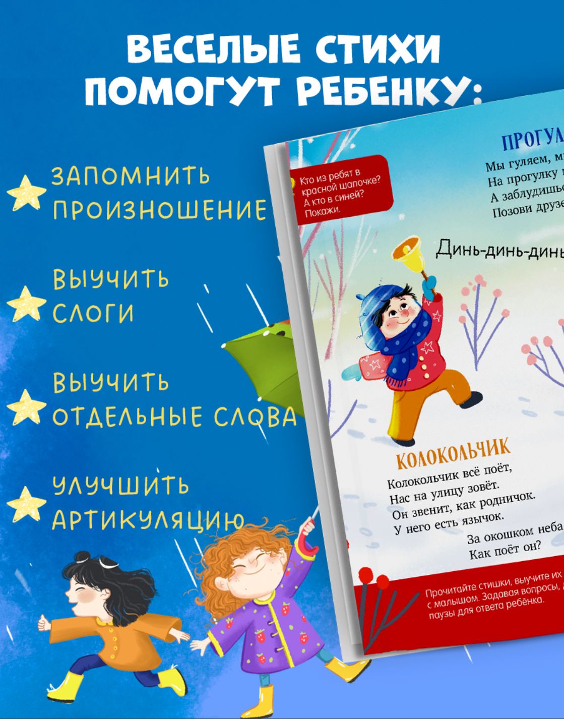 The cheerful, chatty poems in this Clever book will help your child memorize the pronunciation of words, learn syllables, and even individual words, so developing speech will be easy and fun!