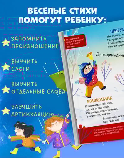 The activities in the children's book "Chatterbox Poems for Speech Development" are special. This book for toddlers will help boys and girls who are still only pronouncing sounds develop speech, while those who have already begun to talk will improve their skills and articulation.