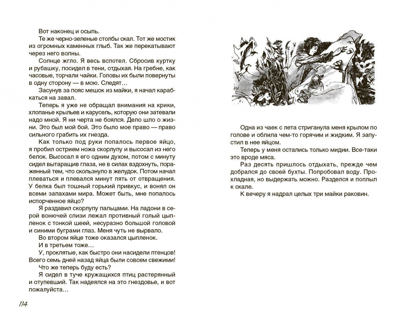 In childhood, the future writer Nikolai Vnukov read books by Stevenson and Dumas, Fenimore Cooper and Jack London. From his uncle, who served on the imperial yacht, he contracted a love for the sea and ships. Very young he went to the front, after the war he worked as a cartographer-topographer in search parties in the Far East, a little later - taught at the technical school of marine instrumentation. It would seem that we have figured out the author: an experienced man, a participant of numerous expeditions, could easily write a story about hardships and difficulties on an uninhabited island in the Sea of Okhotsk. But there is something else! It all started with the newspaper "Pacific Komsomolets", which in 1977 published a short note about the adventures of a fourteen-year-old boy living with his father in the village of the oceanological station. Nikolai Vnukov decided to meet him by all means. "And here is Sasha Barash in front of me - thin, short, shy. Tells slowly, thinking over each word. And I look at him and can hardly believe that in front of me - a modern Robinson." So, from personal experience and real history, this book was formed about what a person really needs to survive. The story was translated into many languages, and in Japan it was recognized by young readers as the best work of 1988. For children of middle and high school age.
