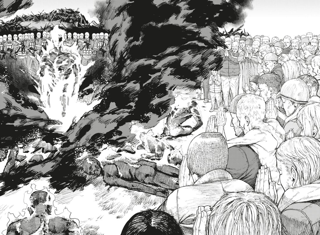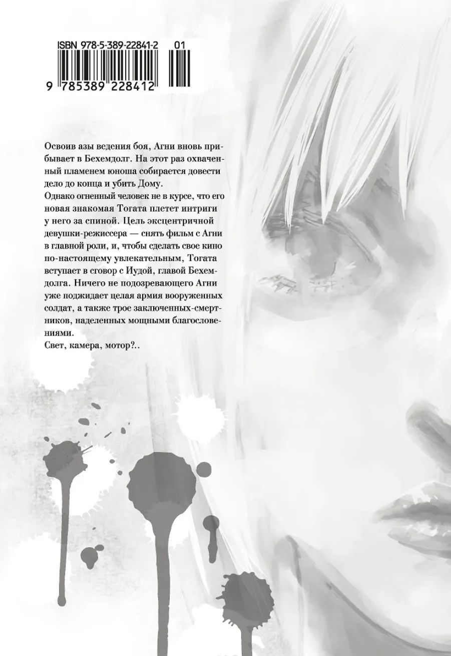Having mastered the basics of combat, Agni returns to Behemdolg. This time, the flame-engulfed youth intends to finish the job and kill Doma. However, the fiery man is unaware that his new acquaintance, Togata, is plotting behind his back. The eccentric director's goal is to make a film starring Agni, and to make her film truly captivating, Togata conspires with Judas, the head of Behemdolg. An entire army of armed soldiers, as well as three death-row prisoners imbued with powerful blessings, await the unsuspecting Agni.
