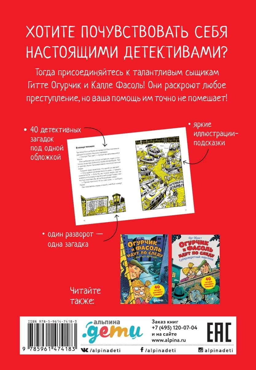 Gitta Pickle and Kalle Bean are detectives. Their detective agency, Pickle and Bean, is known throughout the city. They are the ones to turn to if something strange or incomprehensible happens. Solve together with the detectives new mysteries, crimes and riddles of a small town. For this you will need all your attention, logical thinking and wit. Read the stories, look at the pictures and remember: little things are very important.