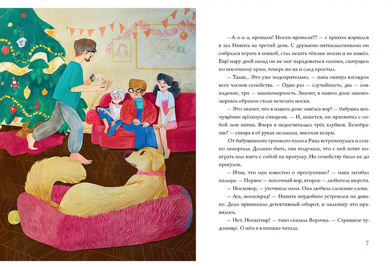 In one friendly family began to disappear warm knitted socks. And everyone alternately - and then disappeared and grandmother's tangles of wool threads. It's like a mysterious beast called Noscotyr. What they did not do to discourage Noskotyr - they smeared socks with mustard, sprinkled pepper, even wanted to let the beloved dog Rick follow the monster. But Ricka didn't think to track down the thief. Then the family council decided to catch a cunning beast