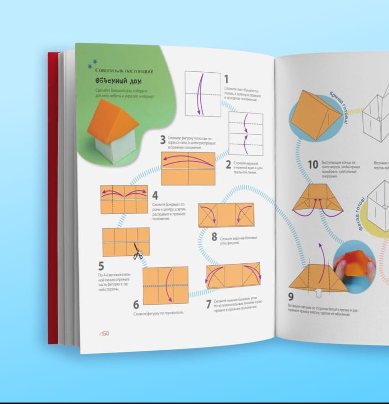 Forget about boring paper frogs and cranes: in the book you will find 10 thematic sections with a huge variety of models for every taste and color. Flora, fauna, technology, transportation and even closet items - everyone will find a figure to his liking. And fold the model you like will not make any effort, because to create them do not need neither glue nor scissors - just a few sheets of colored paper.